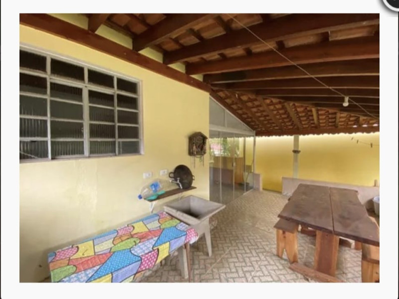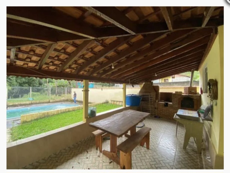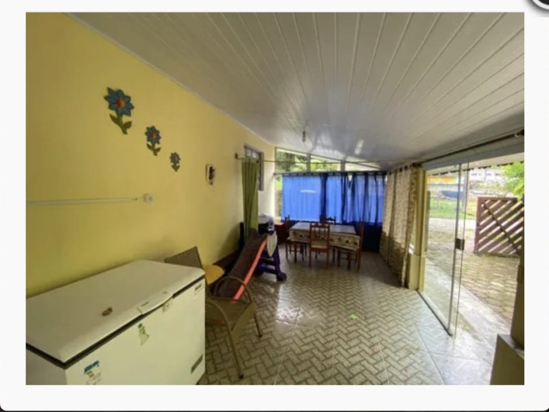 Casa com sala, cozinha, banheiro social, 01 dormitório, varanda, área de lazer com churrasqueira